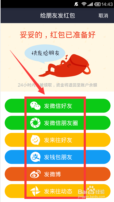 第六步:将密码红包发送到朋友圈或者单独发送给好友;